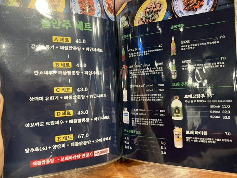세트메뉴도 있고 다양한 요리류, 안주류가 있어서