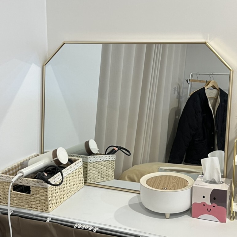 옷도 걸 수 있고 헝클어진 머리도 다시 하고 갈 수 있도록 드라이기와 각종 소품이 있어요