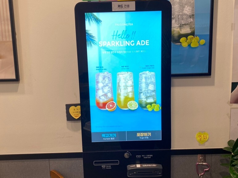 주문은 키오스크로 할 수 있었는데 먹고가기 포장하기 선택 !