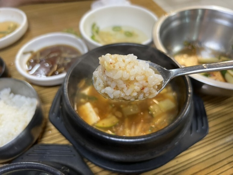 밥은 따끈하고 쌀이 쫀득해서 더 맛있었어요