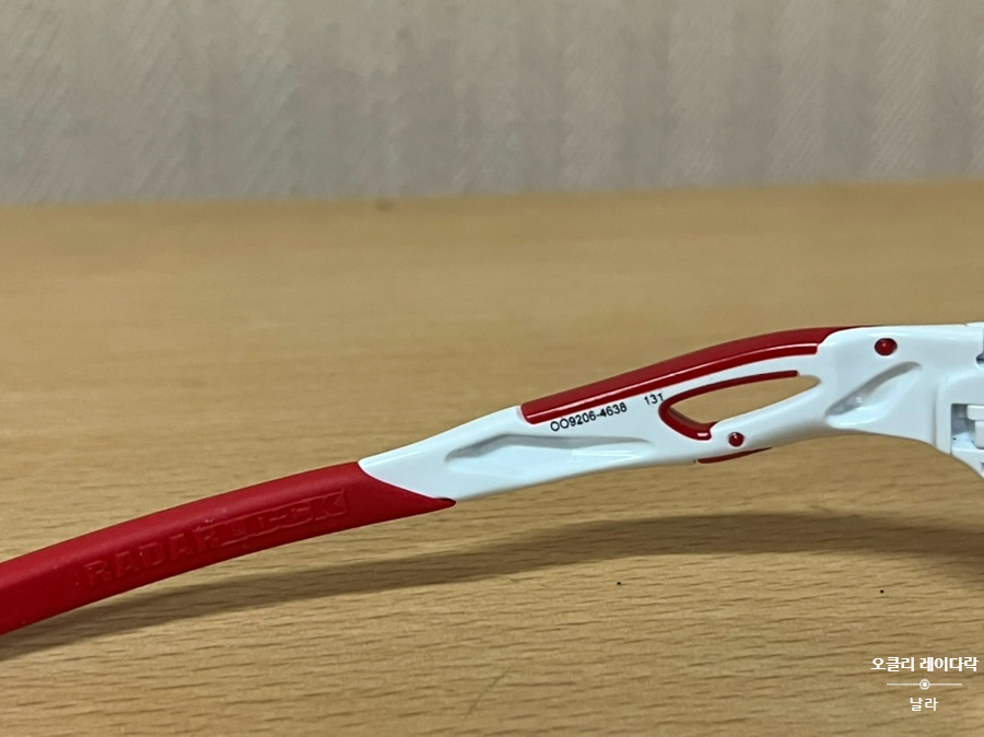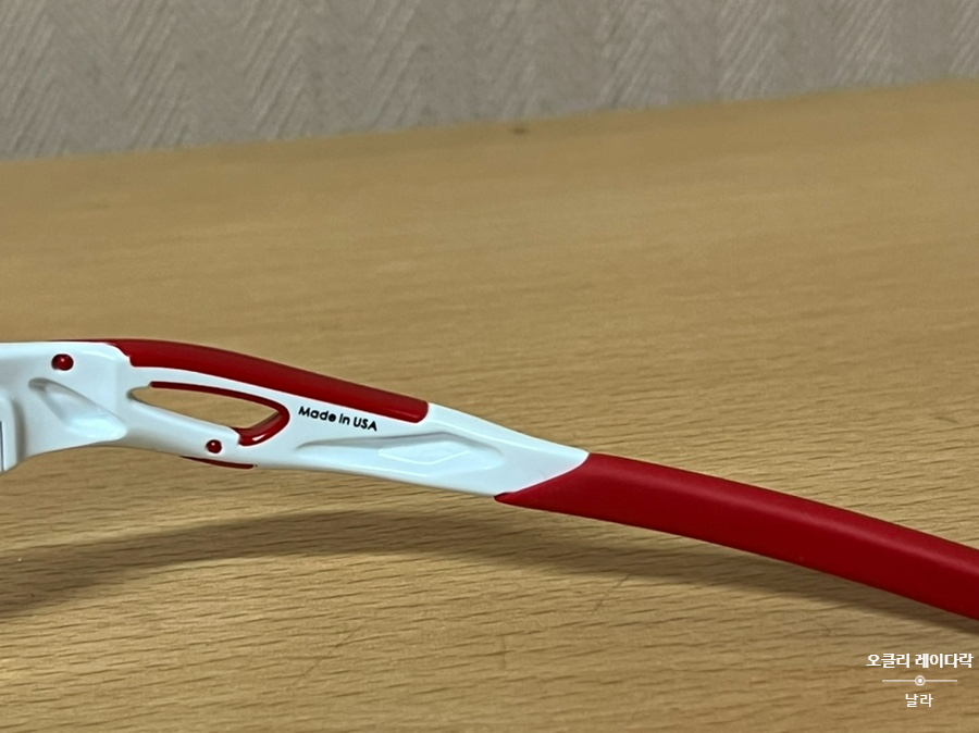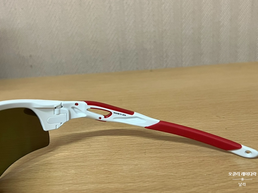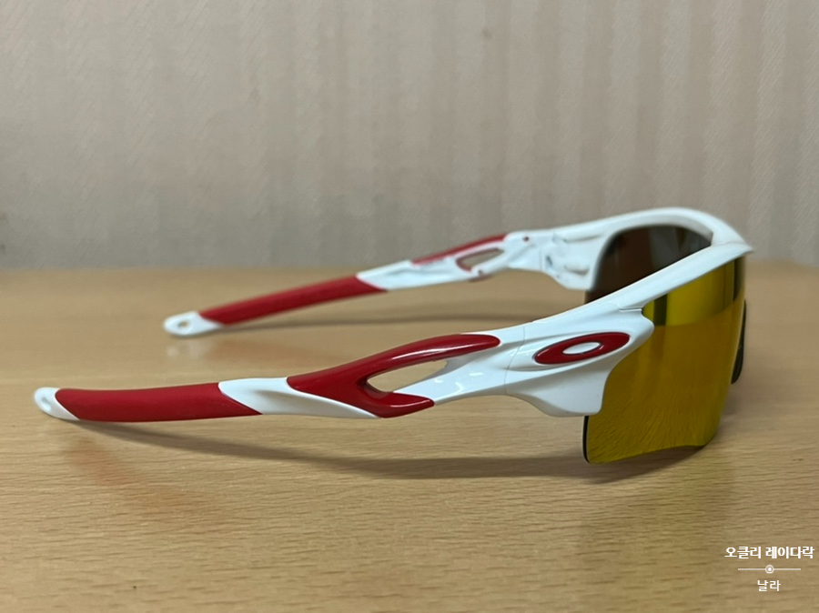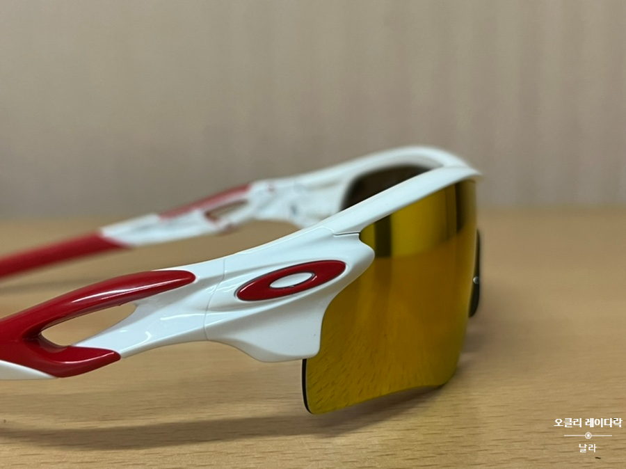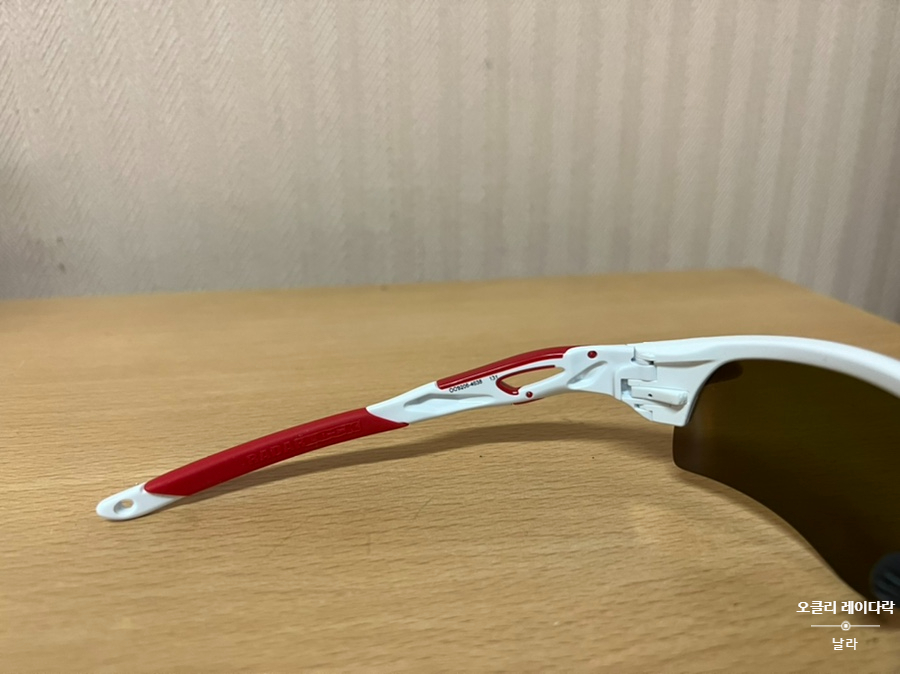 고글 다리는 흰색과 빨간색이 조화롭게 섞여있어