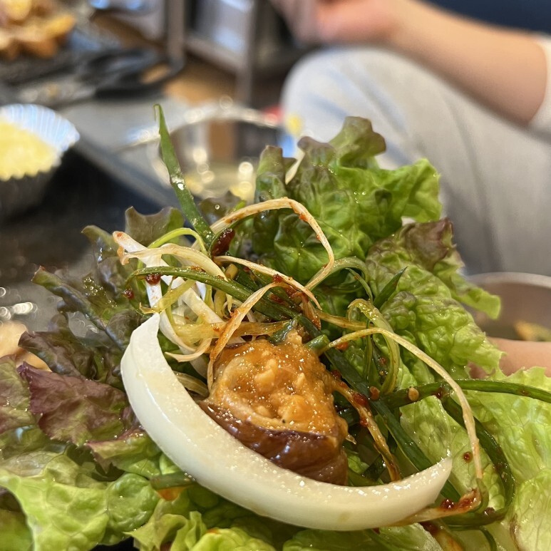 양파, 쌈무, 명이나물, 배추김치